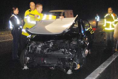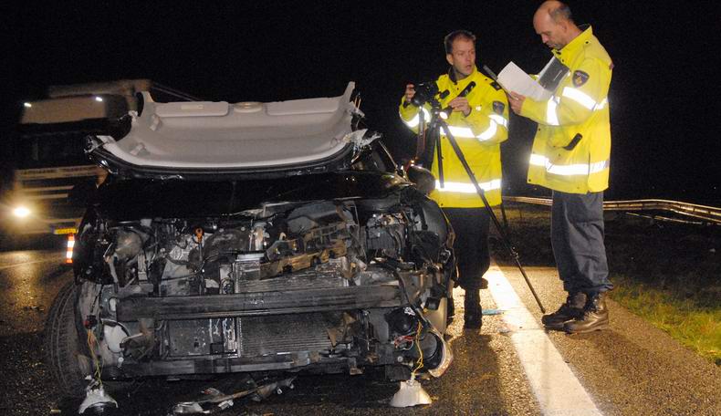 Personeel van de afdeling Verkeersongevallenanalyse onderzocht de zaak ter plaatse. Het verkeer werd omzichtig via de vluchtstrook langs de plaats van het ongeval geleid. |