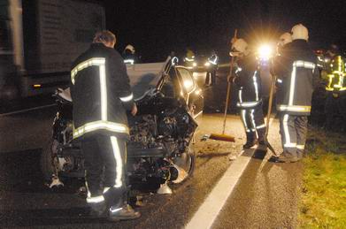 | De brandweer van de gemeente Emlichheim werd zaterdag om 17:09 uur ontboden bij een verkeersongeval op de Kanalstrasse in Ringe. De brandweer van Emlichheim rukte uit met drie voertuigen; die van Ringe-Neugnadenfeld met één wagen. Ter plaatse bleek, dat een twintigjarige automobilist uit Ringe met zijn auto naast de weg gekomen was en met het dak tegen een boom gebotst was. |