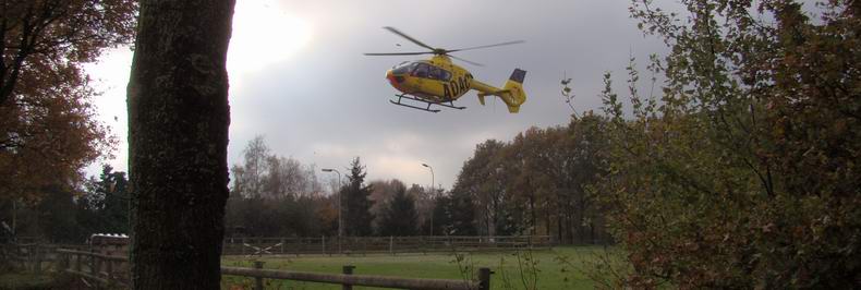 | In verband met de ernst van het letsel werd niet alleen ambulancepersoneel ontboden, maar ook een Mobiel Medisch Team, dat met de traumaheli uit Kleve arriveerde. |