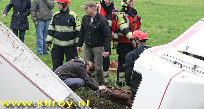 | Niebert: paard bekneld in gekantelde trailer |