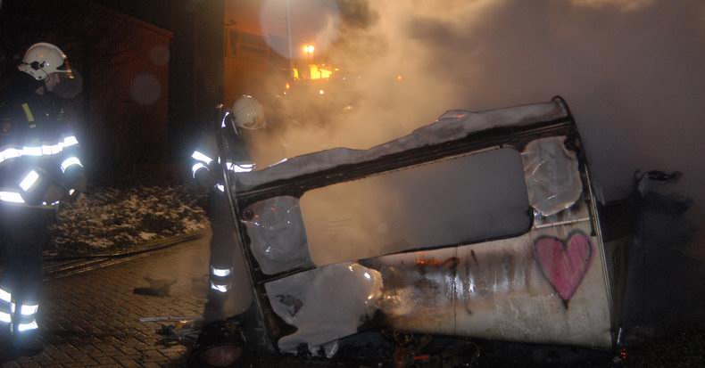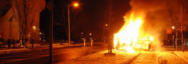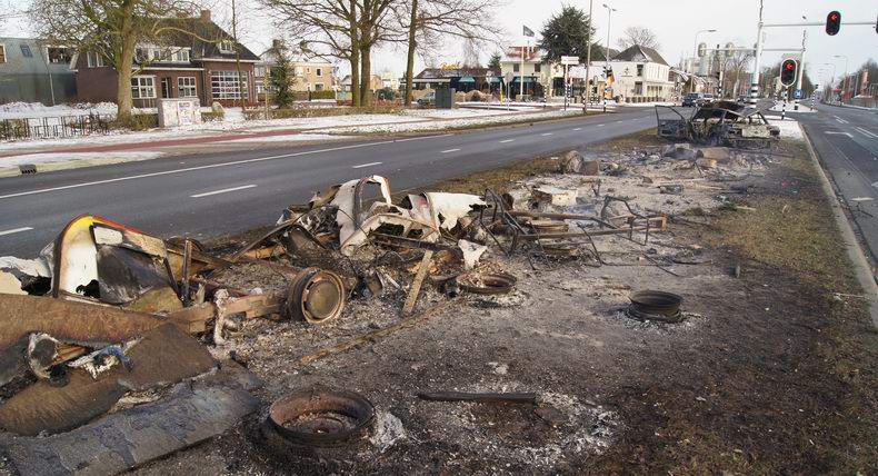 | Datzelfde gebeurde in Slagharen, waar voor Huize de Eik één caravan afbrandde en in Balkbrug, waar aan de N377 bij de brandweerkazerne een auto en een caravan in vlammen opgingen. (Met deze foto's besluiten we onze oud- en nieuwreportages). |