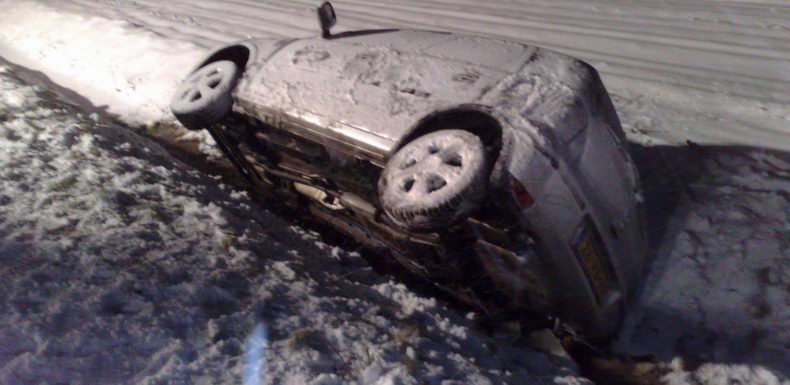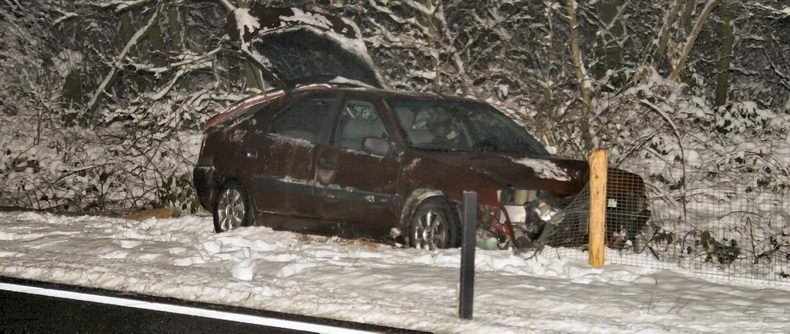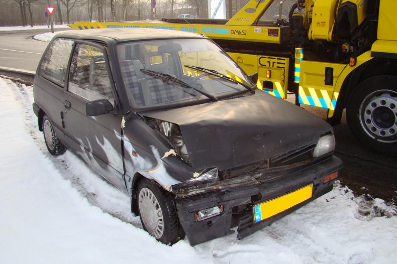 | Hoe het ongeval ontstond was nog onduidelijk: het wegdek was sneeuwvrij en goed berijdbaar. De auto was behoorlijk beschadigd en moest worden weggesleept. |