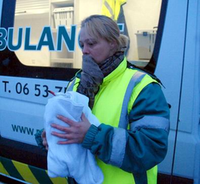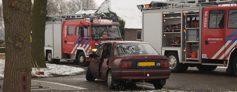 De bestuurster werd op een wervelplank uit de wagen gehaald en naar het ziekenhuis overgebracht. Haar auto was in een sneeuwophoping op de weg geslipt, op een boom gereden en over de sloot in een weiland tot stilstand gekomen. |