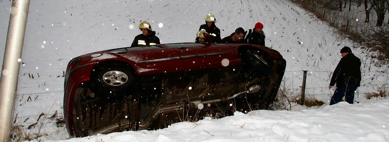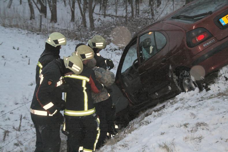 Waarschijnlijk moest de bestuurder uitwijken voor een automobilist, die plots van rijbaan veranderde. Eenmaal op de sneeuwlaag waren manoeuvreren en remmen niet meer mogelijk en ging de auto, een Hyundai Accent, hard voorover in de greppel en sloeg over de rand er weer uit. |
