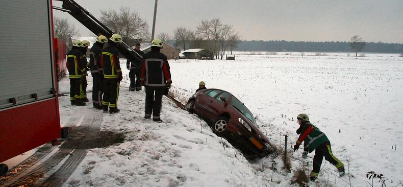 | Een eenvoudig lijkende klus bij een boerderij nabij Itterbeck liep vanmiddag uit op een angstaanjagend avontuur voor een inwoner van Zuidwolde. De man reed met zijn Landrover Discovery over de Hauptstrasse (L43) van Hardenberg naar Itterbeck, maar ongeveer anderhalve kilometer voor de Ratzeler Strasse kwam de aanhangwagen met de rechter wielen in de berm en begon dermate te slingeren, dat de combinatie onbestuurbaar raakte en links van de weg een akker in vloog, waarna de terreinwagen ondersteboven tot stilstand kwam en in de sneeuw en de drassige aarde wegzakte. De bestuurder kon zijn portier daardoor niet open krijgen, maar wist zich met enige moeite door het raampje aan de passagierszijde te wurmen, waarna hij vaststelde, dat hij het hachelijke avontuur zonder letsel had doorstaan. De aanhangwagen bleef overeind, maar de dissel was afge-broken. De lading -materiaal voor paardenboxen- liep geen schade op en kon alsnog naar de bestemming worden overgebracht door de nieuwe eigenaar, een boer, die even verderop woonde. |