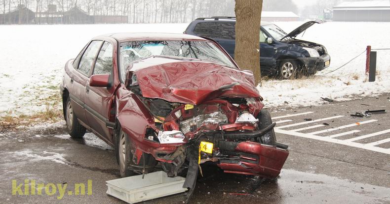 | Na de klap schoot de terreinwagen tussen twee dikke bomen door een weiland in. De Vectra kwam na een draai van 180 graden dwars op de Achterkampweg tot stilstand. Van de twee inzittenden van de Toyota (vader en zoon) raakte de jongste licht gewond. Ook de bestuurder van de Vechtra liep licht letsel op. De brandweer van Lemelerveld rukte uit, maar hoefde geen gebruik te maken van hydraulische redmiddelen. Berger Wolves, die de zwaar beschadigde auto's op mocht halen, moest even geduld oefenen, aangezien twee experts van de VOA eerst de omstandigheden vast moesten leggen voor het proces verbaal. |