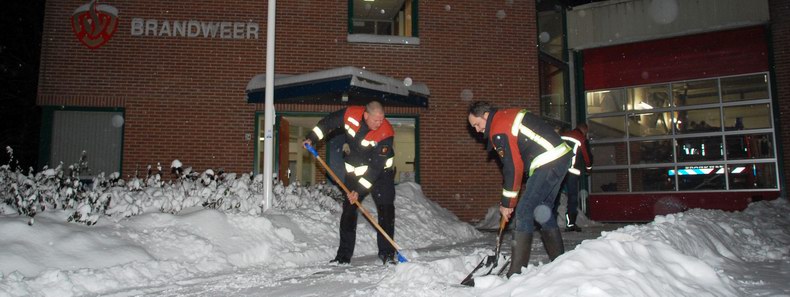Omdat men vreesde, dat bij een calamiteit de brandweermannen en vrouwen de kazerne niet op tijd zouden kunnen bereiken, werd het kazerne- terrein sneeuwvrij gehouden. Zaterdagavond rond half elf konden de korpsleden naar huis. De sneeuwval nam af, zodat het het voor de brandweerlieden weer mogelijk was, om bij een calamiteit de kazerne binnen de afgesproken tijd te bereiken. (Foto's: Persbureau Meter) |
