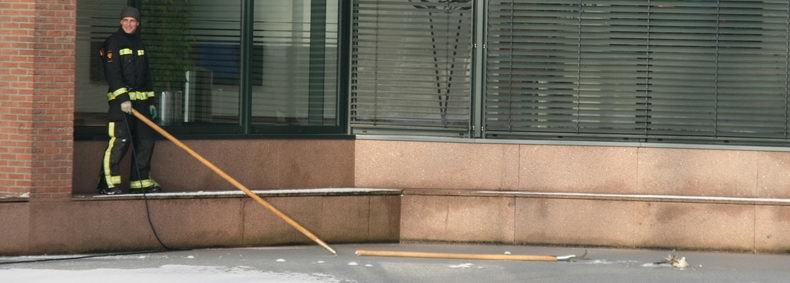 | De brandweer heeft zondagmiddag een levende, aan het ijs van de vijver bij het TVM-gebouw vastgevroren meeuw uit zijn benarde positie bevrijd. Het was een lastige plaats om te bereiken en de dikte van het ijs werd niet vertrouwd. Met een lange staak met een pikhaak eraan werd getracht het ijs te breken. Maar het ijs bleek sterker en de stok brak. |