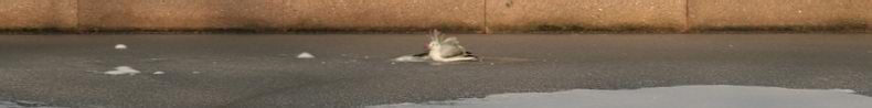 | Daarna ging de brandweerman te water en wist -al ijsbrekend- de vogel (een kokmeeuw) te bereiken. Deze is met waarschijnlijk een gebroken vleugel weggebracht naar de dierenopvang. |