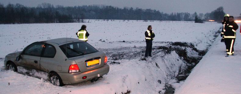 | Zuidvelde: auto slipt sloot in door gladheid |