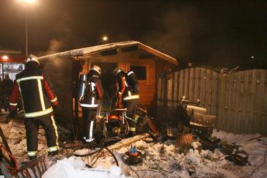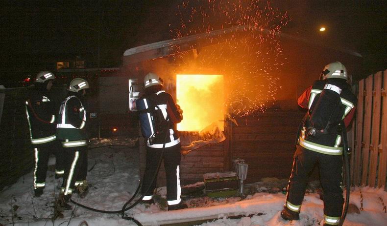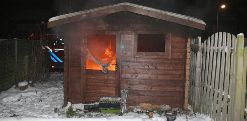 | Een schuurtje van een woning aan de Regulus, staande aan de kant van de Atlaslaan, is woensdag aan het eind van de middag naar alle waarschijnlijkheid in brand gestoken. De zoon des huizes, de dertienjarige Nick, ontdekte de brand vanuit de woonkamer, belde direct de brandweer en begon samen met een inmiddels gewaarschuwde buurvrouw met emmers water te blussen. Op telefonisch advies van de brandweer werd dat gestaakt vanwege het gevaar. Hoe terecht dat advies was, bleek even later. De brandweer was nog maar net begonnen met blussen, toen er iets in de schuur ontplofte en de vlammen hoog oplaaiden. |