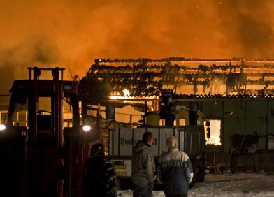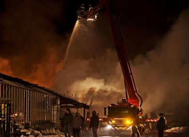| De zwarte rookwolken verdwenen al vrij snel en de tint vernaderde naar grijs-wit. Het publiek werd middels een politie-afzetting op vrij grote afstand gehouden. Waterwinning bleek geen probleem: de loods lag op een steenworp afstand van de haven. Over de oorzaak en de omvang van de schade is nog niets bekend. |