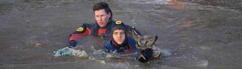 | Aan de Vaartweg in Hasselt kwam vanmiddag de Hasselter brandweer in actie om een ree uit de Dedemsvaart te redden. Het dier was door de dunne ijslaag gezakt en vocht voor zijn leven. Twee duikers trotseerden de kou en gingen te water en één van hen had het dier al snel vast. Direct ging het hertje het warme waterongevallenvoertuig in en werd daar drooggewreven. Helaas overleed het dier onderweg naar een warme schuur... |