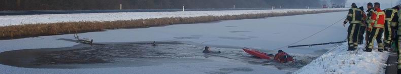 Een automobiliste is donderdagavond gered door het ijs van het kanaal aan het Oude Schuttingkanaal Oz in Roswinkel.