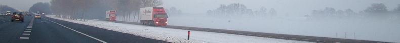 | Het werd nog gekker: deze trekker met oplegger denderde ons direct daarop met nòg hogere snelheid voorbij, met niet meer dan tien meter afstand tot de personenauto voor hem. Stel je eens voor, wat een plotselinge mistbank aan zou richten en denk daarbij aan het ongeval van 28 december j.l. bij Staphorst, waarbij twee doden en meerdere zwaar gewonden vielen.... ( klik hier) Niets van geleerd, jongens? Zou de baas van Schenker Logistics vinden, dat de lading onder alle omstandigheden en vooral koste wat kost op tijd moet aankomen ? En waarom schoot me toen de tekst van Herman van Veen's liedje "Opzij, opzij, opzij, we hebben ongelofelijke haast" opeens te binnen? |