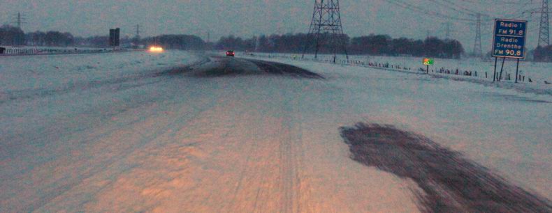 | De N34 was tot Holsloot goed te berijden, maar toen kwam de afrit richting Hoogeveen (A37): spekglad ! |