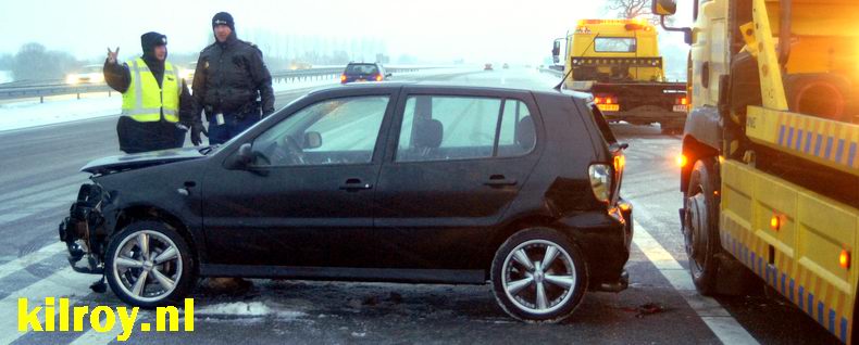 De bestuurster werd door ambulance personeel onderzocht en bleek niet gewond. De auto raakte dermate beschadigd, dat hij moest worden weggesleept. Sneeuwschuivers van Rijkswaterstaat waren zondagochtend al druk bezig met het schoonmaken van de weg. |