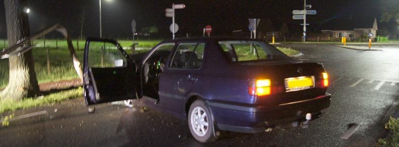 | De bemanning van de tankautospuit van Slagharen trof een aardige chaos aan op de kruising Weverijweg - Herenstraat. De mannen waren in de nacht van zondag op maandag om 02:09 uur uit hun warme bedjes gepiept vanwege een "ongeval letsel". Er bleek een personenauto dwars over de weg te staan; ernaast lagen een lichtmast en diverse auto-onderdelen. De auto was uit de richting van Hollandscheveld gekomen, maar in plaats van er omheen was het voertuig dwars over twee vluchtheuvels gereden en had vervolgens een lichtmast compleet uit de grond gereden, waarna de rit eindigde tegen een eik in de rechter berm. De bestuurder -een 27-jarige Slagharenaar- was al auto zijn auto gestapt en leunde tegen een verkeersbord. Na het onderzoek in de ambulance produceerde de man bij de blaastest een F en kreeg een rit naar het politiebureau in Hardenberg aangeboden, waar hij 630 ug/l. blies op het ademanalyse-apparaat. Zijn rijbewijs werd ingevorderd en hij kreeg proces-verbaal voor rijden onder invloed. Het wrak van zijn VW werd opgehaald door de firma Autax. De kruising was weer beschikbaar rond 03:20 uur. |