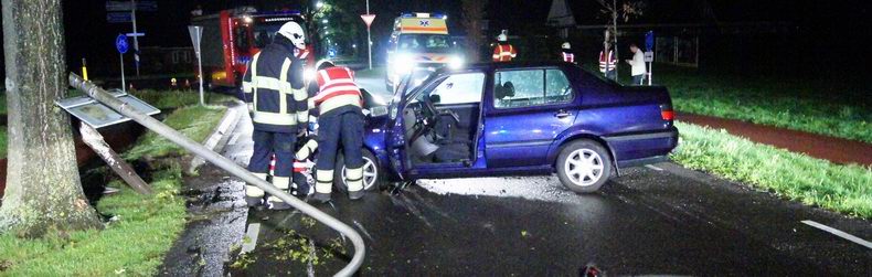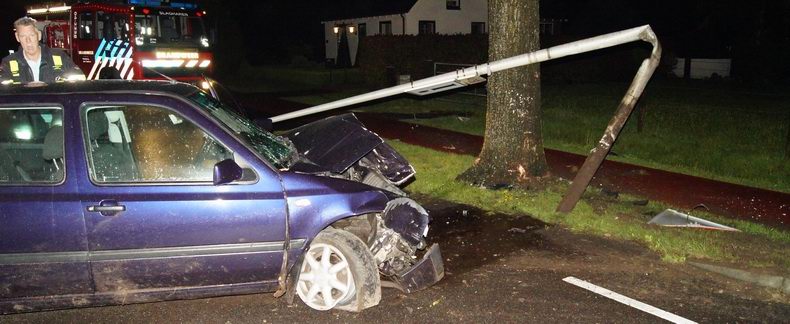 | Slagharen: automobilist ramt vluchtheuvels, lichtmast en boom (update) |