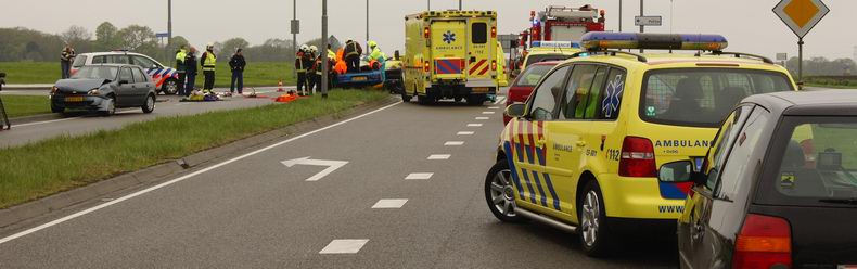 Hier waren drie personenauto's op elkaar gebotst. Het ongeval ontstond, nadat een automobilist afremde voor een auto, die voor hem vaart minderde. De autobestuurder daarachter zag dit te laat en reed achterop deze wagen. Door de klap is de aangereden auto op de linker baan terecht gekomen en tegen een tegemoet komende auto gereden. De vrouw werd met nek- en rugletsel per ambulance naar het ziekenhuis overgebracht. Personeel van de afdeling Verkeersongevallenanalyse van de politie legde de sporen van het ongeval vast. De drie zwaar beschadigde auto's werden door een berger afgesleept. |