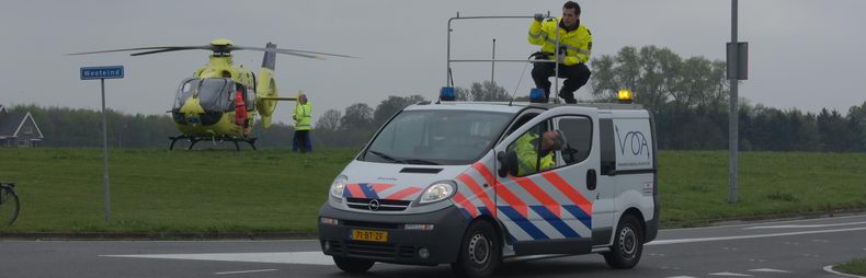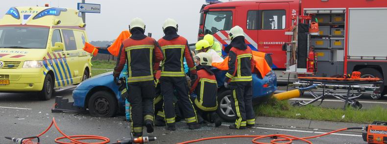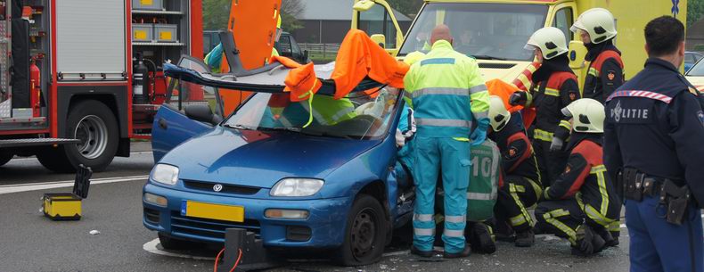 | Een 35-jarige inwoonster van Schoonebeek is vanmorgen rond 07:10 uur ernstig gewond geraakt, toen ze vlak voor de spoorwegovergang in de Nieuw Amsterdamsestraat (Schoonebeek-Nieuw Amsterdam) tegen een stapel loodzware draglineschotten reed, die in de rechter berm stond. Het slachtoffer, dat onderweg was naar haar werk in een bejaardentehuis in Nieuw Amsterdam, kwam in haar Suzuki Alto bekneld te zitten. In een ruim twee uur durende operatie werd de vrouw behandeld en met behulp van hydraulische redapparatuur uiterst voorzichtig door de Schoonebeeker brandweer uit het wrak bevrijd en naar de ambulance overgebracht, die haar na verdere stabilisatie door ambulancepersoneel en het Mobiel Medisch Team naar de naast de spoorlijn wachtende traumaheli Lifeliner 4 vervoerde. De vrouw had naar verluidt knie-, heup- en hoofdletsel opgelopen. |