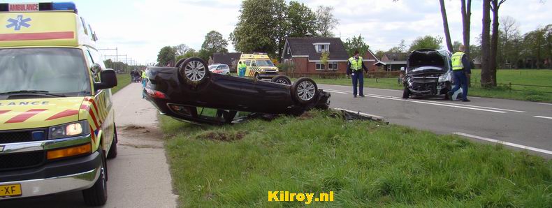 | Vier leden van een gezin uit de regio Rotterdam beleefden vanmiddag een akelig avontuur, toen ze over de Gramsbergerweg van Hardenberg richting Gramsbergen reden. Nabij de spoorwegovergang bij de Westeindigerdijk kwam een hen tegemoet komende zwarte Mazda 6 slingerend op hen af en raakte hun Citroën Berlingo bijna-frontaal. De aanrijding had ernstige gevolgen: de Citroën raakte zwaar beschadigd, maar de inzittenden (de bestuurder, zijn zwangere echtgenote en hun twee kinderen) kwamen er vanaf met slechts relatief licht letsel; mede, omdat de kinderen in goede zitjes op de achterbank vast zaten. Ze zijn ter controle naar een ziekenhuis overgebracht. De bestuurder van de vier maanden oude Mazda 6 is per ambulance afgevoerd. Het ongeval is mogelijk ontstaan, doordat de bestuurder van de Mazda tijdens de rit onwel is geworden. |