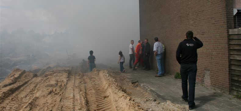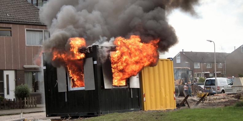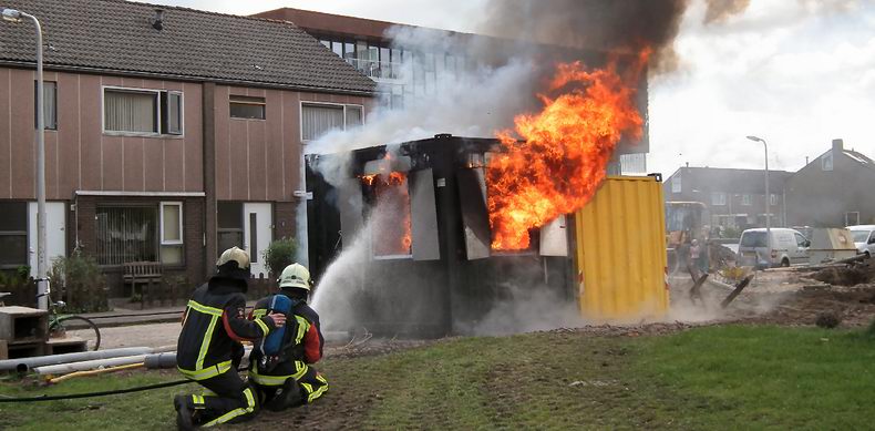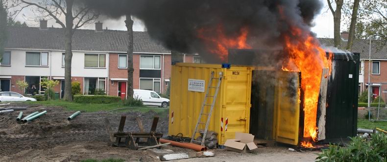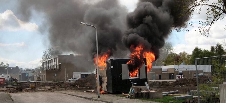 | Aan de Orion is dinsdagmiddag tijdens de middagpauze een bouwkeet volledig uitgebrand. De rook, die de brand veroorzaakte, trok veel nieuwsgierige omwonenden aan. In de keet waren nog nog gasflessen aanwezig. Door snel optreden van de brandweer zijn die niet ontploft. Over de oorzaak konden aanwezige werklui geen uitsluitsel geven. Kortsluiting in het koffiezetapparaat of de verwarming werd als mogelijke oorzaak aangegeven. De bouwkeet bestond voor de helft uit een stalen container. |
