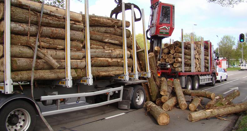 | Zwolle: vrachtwagenchauffeur verliest lading boomstammen na aanrijding met taxi |