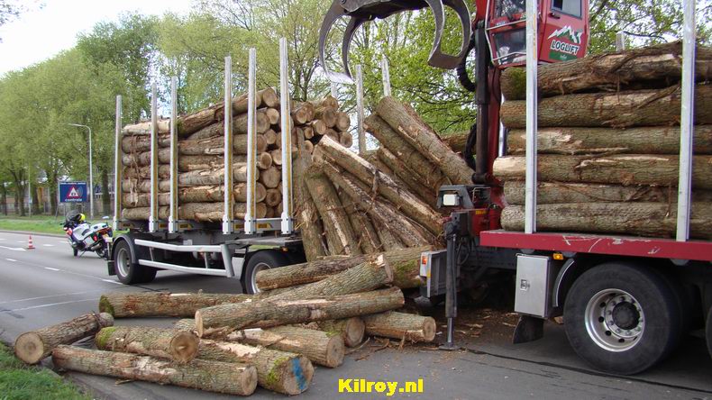 | Nadat ook deze inspectie afgerond was, bleek dat de lading te zwaar was en op een veilige plek gecorrigeerd diende te worden. De combinatie reed weg onder begeleiding van twee politiemotorrijders. De taxi werd door berger Leerentveld opgehaald. Brandweerlieden ruimden de achtergebleven boomschors op. |