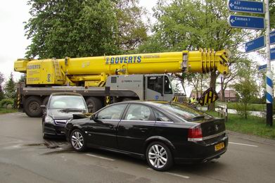 | Maar liefst drie ambulances werden ontboden na een aanrijding op de Vaart Noordzijde in Nieuw Amsterdam ter hoogte van de Noorderkerk. Een automobilist, die in westelijke richting reed, nam de bocht te krap en reed met zijn Opel Zafira frontaal tegen een Opel Vecta, waardoor flinke schade ontstond. Eén van de bestuurders en een tienermeisje, dat meereed in de Vectra, zijn uit voorzorg voor onderzoek met een ambulance naar een ziekenhuis overgebracht. De auto's bleven op het botspunt staan vanwege het VOA-onderzoek. Het verkeer kon -voorzichtig- langs de beschadigde auto's rijden, hoewel dat sommige automobilisten kennelijk minder gemakkelijk af ging, dan de kraanbestuurder van een Hardenbergs kraanbedrijf, die zijn zware kolos moeiteloos om de obstakels heen stuurde. |