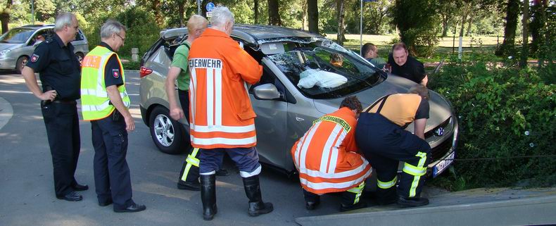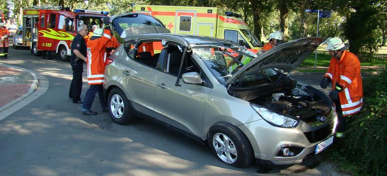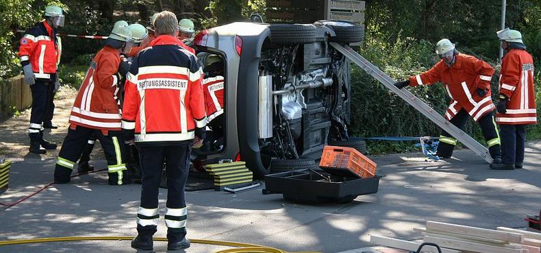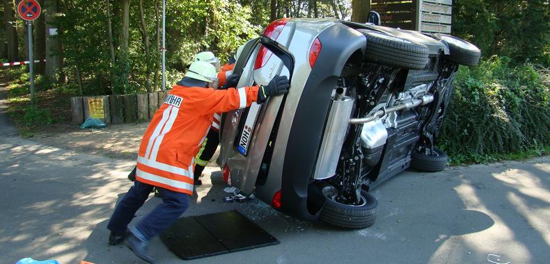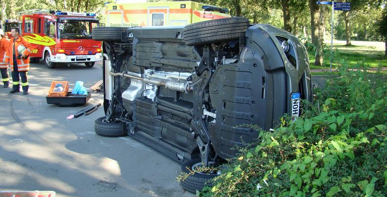 | Helaas voor de kersverse eigenaar besloot de bevelvoerder van de Uelsener brandweer, die met drie wagens en vijftien man was uitgerukt, dat het dak van de auto geknipt diende te worden, hetgeen de nuttige levensduur van de auto tot het minimum beperkte; tenminste: als men het gebruik van de onderdelen van het nu slooprijpe voertuig niet meerekent. De bewonde bejaarde is per ambulance naar het ziekenhuis vervoerd. De auto werd met hulp van een groepje sterke spuitgasten op de autoambulanceaanhanger van een plaatselijk garagebedrijf gezet. |