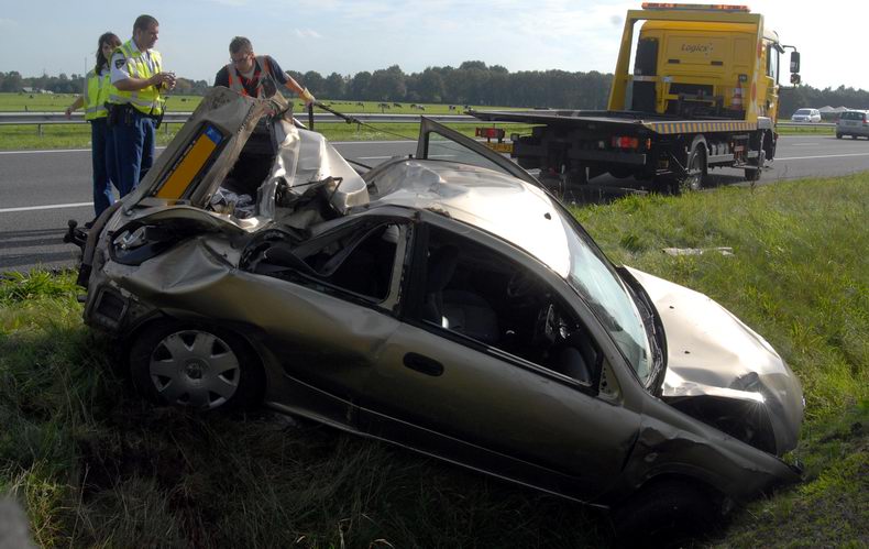 | De auto liep schade op aan de linker voor- en achterzijde op en bleek tevens een lekke linker voorband te hebben opgelopen. Berger Klaas van de firma Autax ontfermde zich over de auto. Het verkeer werd om en om langs de ongevalslokatie geleid. Tegen tienen was de rijksweg weer vrij. |