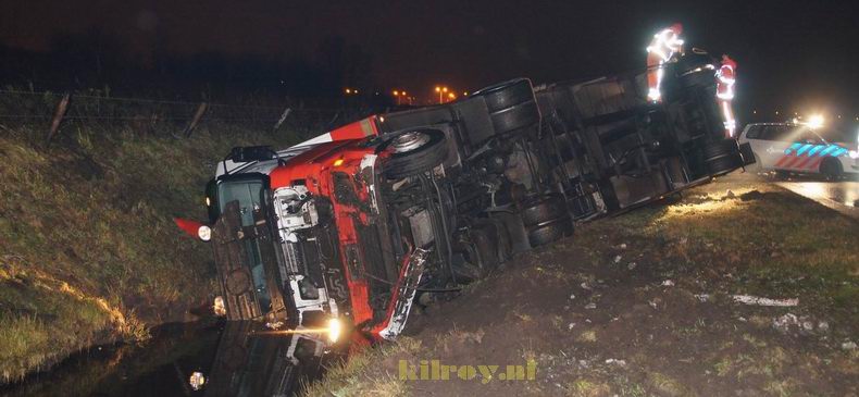 | N331 / Zwolle: truck bakkerij op z'n kant in bermsloot |