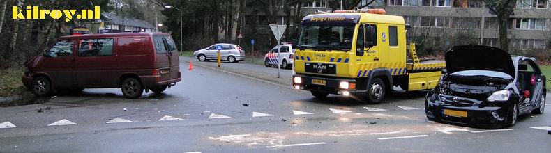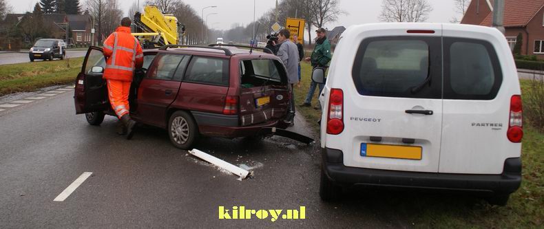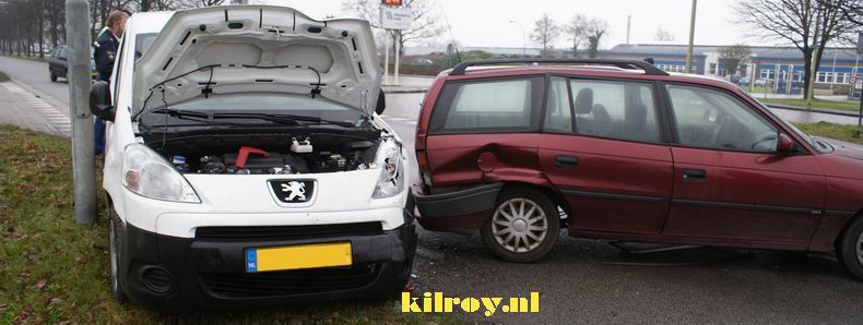 | De stationcar stond stil voor een rij wachtende voertuigen, waarvan het voorste gestopt was om af te slaan naar de Kijlweg. De bestuurder van de Peugeot was dat kennelijk ontgaan. De Peugeot schoot na de optater door tegen een bedrijfsauto, maar die liep geen noemenswaardige schade op. De aan de voor- en achterzijde beschadigde, bijna zestien jaar oude Opel was echter rijp voor de sloop. Berger Koolen haalde beide beschadigde auto's op. |