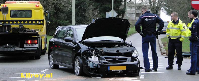 | Op de kruising van de Hotweg met de Laan van de Bork is vanmorgen rond kwart over acht een automobilist gewond geraakt ten gevolge van een anrijding. Voor zover bekend verleende de bestuurder van een zwarte Toyota Corolla, die uit de richting van de Laan van de Marel de Hout-weg op reed, geen voorrang aan een van rechts over de Houtweg naderende VW Transporter bestel. |