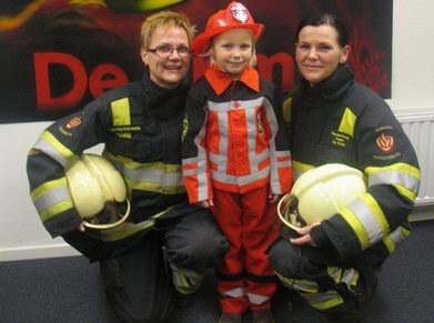 Anouk was supertrots op haar uitrukpak en de helm en liet weten, dat ze later ook een brandweervrouw wil worden !