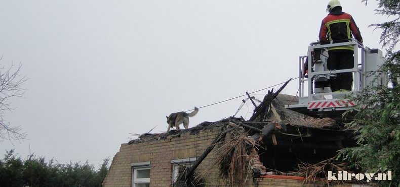 | Bij ankomst sloegen de vlammen al hoog uit het dak en was duidelijk, dat het pand niet meer te redden was. De woning, die te koop stond, werd niet bewoond, toen de brand uitbrak. De eigenares woont sinds kort in Zuidwolde. (In tegenstelling tot wat elders gemeld wordt, betrof het geen boerderij). |