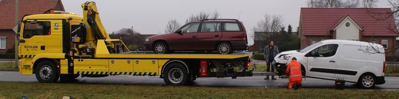 De 26-jarige Hoogeveense, die de personenauto bestuurde, bleef ongedeerd, net als haar dochtertje. De zwaar beschadigde auto's werden opgehaald door bergers De Jonge en Kraal, nadat een VOA-expert de situatie gefotografeerd had. |