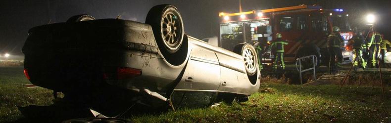 | Zaterdagmiddag werd er alarm geslagen, nadat gemeld was, dat er een voertuig te water was geraakt langs de A28 tussen tankstation De Panjerd en afslag Rogat. Na een brede berm ligt daar de Hoogeveense Vaart, maar ertussen ligt nog een redelijk diepe bermsloot en daar was het voertuig in terecht gekomen, nadat de bestuurder was ingedommeld. De auto had in de middenberm de vangrail geschampt en schoot, na een ruk aan het stuur, de rechterberm in, waar het voertuig een keer over de kop ging en en vervolgens de bermsloot in gleed. |
