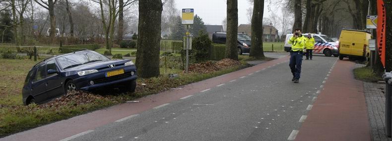 | Vrijdagmiddag is een inwoner van Assen met zijn Cadillac BLS van de A28 geraakt even voorbij Pesse. De bestuurder verklaarde, dat hij zonder haast achter een paar vrachtwagens reed met de cruise control op 100 km/uur, toen de auto plots begon te slingeren en in de berm raakte, een aantal boompjes schampte, waarvan er één plat ging en in de bermsloot tot stilstand kwam. Behulpzame automobilisten haalden de man uit de sloot. |