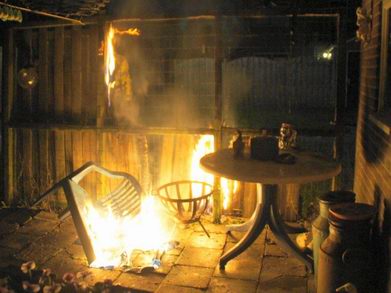 Dat lukte niet, integendeel, want de schutting vloog ook in brand. |