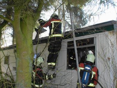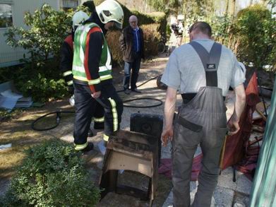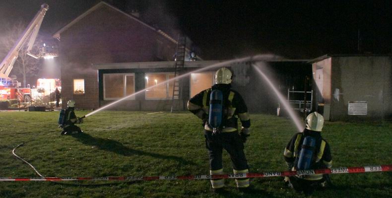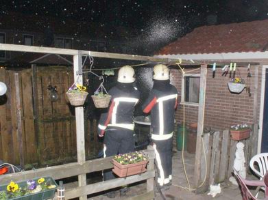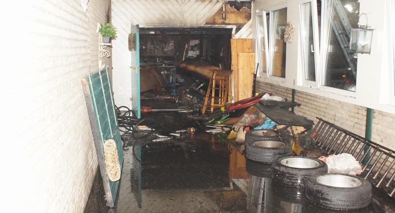 | Hoewel de ergste vlammen snel bedwongen waren, had het nablussen nogal wat voeten in de aarde, mede, omdat er nog vuurhaardjes onder het dak van de garage zaten. Hierom besloot men niet alleen een deel van het dakbeschot te verwijderen, maar ook het dak van boven af met een kettingzaag te openen om de laatste bedreiging de kop in te drukken. Het interieur van de garage annes hobbyruimte en de daarin opgeslagen materialen werden grotendeels verwoest. |