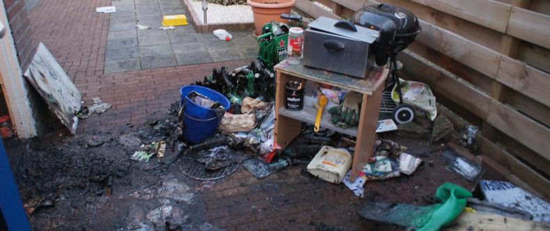 Samen met een van de bewoners, die met een schop zand op de vlammen gooide, kreeg hij het brandje met een bezem onder controle. De brandweer bluste het geheel na. |