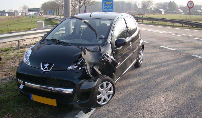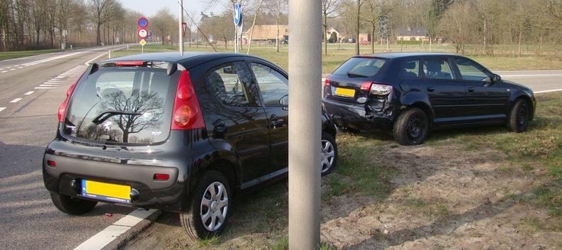 De bestuurster van een achter haar rijdende (anderhalve maand oude) Peugeot 107 had niet gezien, dat de Audi afremde en botste tegen de achterzijde van die auto |