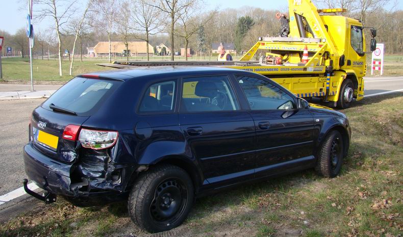 | De uit Dedemsvaart afkomstige bestuurster van een Audi A3 werd maandagmorgen onaangenaam verrast, toen ze op de N34 richting Ommen reed, maar voor de inmiddels beruchte kruising bij Sportpark De Boshoek moest afremmen voor afslaand verkeer.