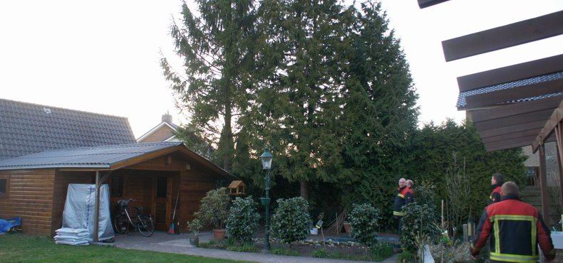| Coevorden: brandweerman redt vermist katje uit hoge conifeer |