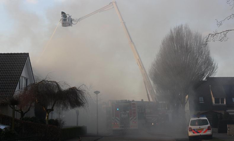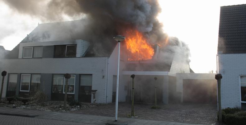 De vlammen sloegen al snel uit het dak en de bovenverdieping van de woning en van de garage zijn totaal verwoest