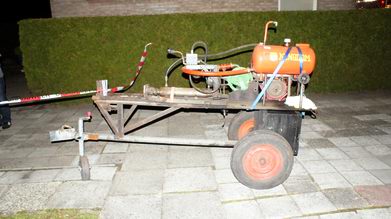 | Het vuur, dat korte tijd hoog oplaaide, kon echter door de boer anel bedwongen worden, zodat er voor de brandweer geen bluswerk meer nodig was. De brand was ontstaan door laswerkzaamheden. |