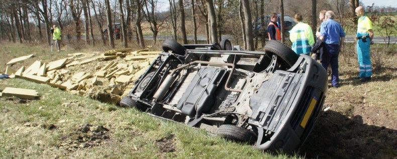 Donderdag is een busje met aanhanger op de A28, ter hoogte van Zuidwolde over de kop gegaan en in de droge bermsloot tot stilstand gekomen.