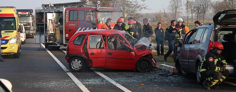 | Zateragmiddag tegen enen werd de brandweer van Vroomshoop ontboden op de Noorderweg in Geerdijk vanwege een ongeval, waarbij iemand bekneld zou zitten, maar deze hulpverleningsopdracht werd al snel geannuleerd. Er bleek zich een ongeval te hebben voorgedaan, toen de bejaarde bestuurster van een Suzuki Wagon R een black out kreeg en een gepar-keerde VW Golf ramde. De Suzuki tolde om zijn as en kantelde, maar drie alerte mannen, waaronder de eigenaar van de VW zetten op verzoek van de automobiliste het autootje voorzichtig weer op z'n wielen. De vrouw werd door ambulancepersoneel voor nader onderzoek in een ziekenhuis meegenomen. Berger Wolves ontfermde zich over de Wagon R en de rondom licht beschadigde Volkswagen. |